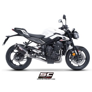 SC Project para TRIUMPH STREET TRIPLE 765 (2024 - 2026) - EURO 5+ - Línea de escape completa 3-1 acero inoxidable, con escape SC1-S carbono