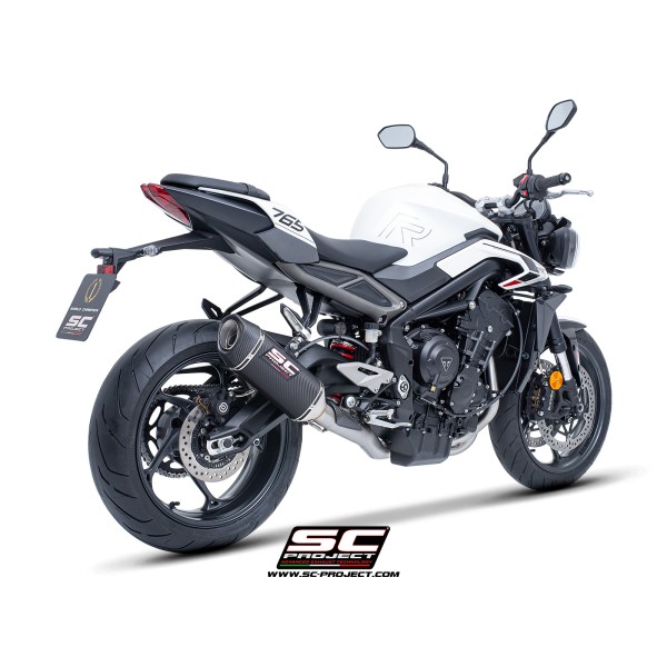 SC Project para TRIUMPH STREET TRIPLE 765 R - RS (2023 - 2024) - EURO 5 - Línea de escape completa 3-1 acero inoxidable, con escape SC1-S carbono