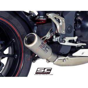 CR-T, es el silenciador pluricampeón del Mundo y que más identifica a la gama SC-Project, se encuentra disponible en las variantes de titanio y carbono y, dependiendo del modelo de motocicleta, con la escenográfica red ignífuga de titanio en la boca de salida.