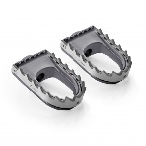 Versatilidad y confort. Estos son los conceptos detrás de la estribera Escape, una combinación de funcionalidad y atención al design. Diseñado para satisfacer la comodidad del uso diario o para enfrentar el off-road más desafiante. Escape, hecho de aluminio a partir de sólido, le permite alojar una goma EPDM que Atenúa las vibraciones y proporciona el grip necesario para una sensación de conducción cómoda y más relajada. La goma es fácil de montar y encaja perfectamente en los dientes de la estribera. No se ha dejado de lado ningún detalle, el acabado superficial se caracteriza por dos significados diferentes, que representan la esencia misma de este accesorio: Altera Texture, diseño exclusivo de Rizoma, que ve la inclinación y disposición de sus módulos para optimizar el agarre, y el diseño All Terrain que evoca el deseo de explorar todos los caminos, incluso los menos transitados. De hecho, al quitar el inserto EPDM, la estribera se transforma y se adapta a un uso más agresivo. Los dientes externos, en acero satinado, están dirigidos de tal manera que evitan la pérdida de adherencia lateral, especialmente cuando el piloto ejerce una mayor presión del pie sobre la parte más externa de la estribera. Gracias a la base de apoyo aumentada a 57 mm de ancho, se obtiene un excelente agarre con la bota y un mayor control en la posición de conducción de pie. Por último, el cuerpo de la estribera es hueco, para aligerar su peso y reducir el riesgo de retener residuos fangosos, y con sus 89 mm de longitud permite una mayor agilidad en los caminos más estrechos.