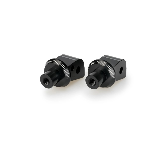 Son específicos para cada modelo, asegurando un ajuste perfecto, e incorporan marcas milimétricas que permiten regular la estribera con total precisión según las preferencias de cada motorista. Su construcción robusta, junto con un diseño compacto y un estilo claramente deportivo, los convierten en una opción ideal para los más exigentes.