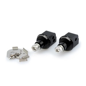 Son específicos para cada modelo, asegurando un ajuste perfecto, e incorporan marcas milimétricas que permiten regular la estribera con total precisión según las preferencias de cada motorista. Su construcción robusta, junto con un diseño compacto y un estilo claramente deportivo, los convierten en una opción ideal para los más exigentes.