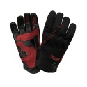 Guantes fabricados con tejido y piel resistentes a la abrasión, con protecciones rígidas en nudillos y función táctil en dedo índice y pulgar. Ajuste mediante velcro en la muñeca, refuerzo de aramida en la palma y refuerzo rígido en los laterales. Incluyen membrana HIPORA® para impermeabilidad y tienen un nivel de termicidad 4.