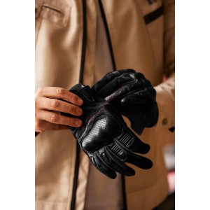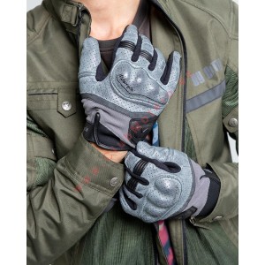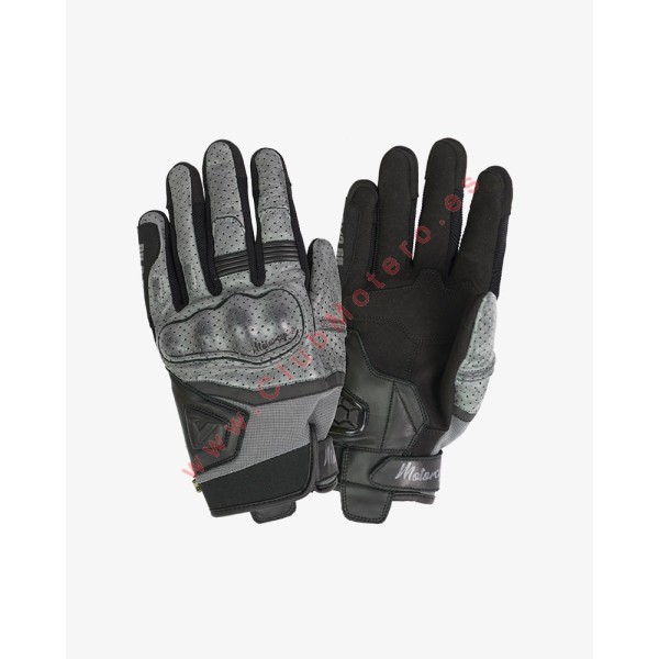 Guantes de moto Tokio Man fabricados en piel perforada y tejido de malla anti-abrasión. Cuenta con refuerzos de Aramida en la palma y membrana táctil en los dedos indice y corazón. Ajustable mediante velcro. Producto certificado CE.