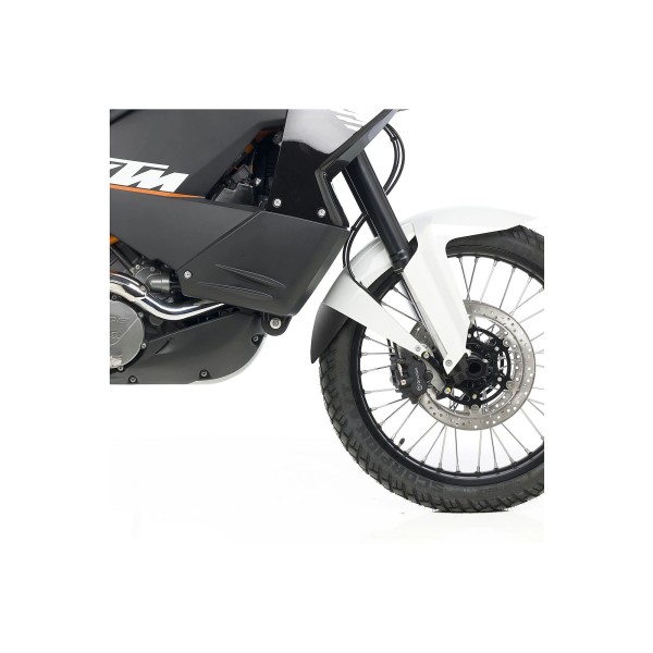 Extensión fabricada en ABS, material altamente resistente a los impactos, será la protección ideal para evitar que al paso de tu rueda pueda saltar cualquier tipo de elemento, impactando conta el cuerpo de tu moto o directamente contra ti.