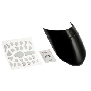 El faldón se sirve en acabado negro para poder adherirla a la estética de la moto sin que esta se vea resentida. Puig, dispone de un faldón específico para los modelos de motocicletas más populares del mercado: Naked, type R, Crosstourer, etc. Para su fijación, Puig proporciona remaches para su fijación a la moto para garantizar una fijación permanente al guardabarros original de la moto.