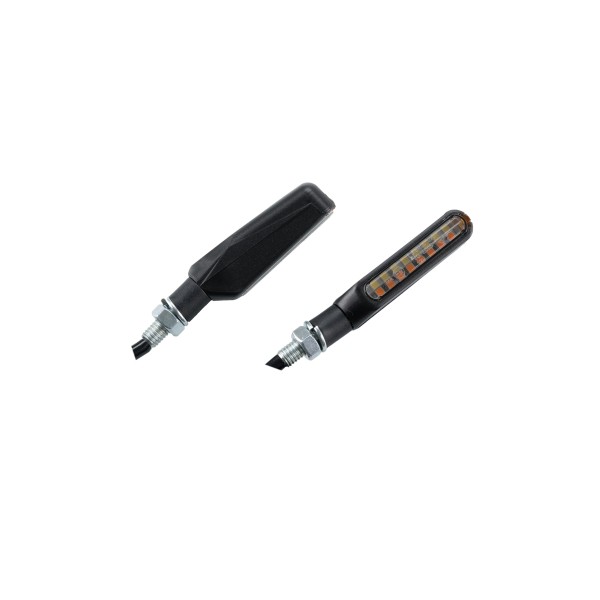 Su diseño estilizado, con dimensiones de 70x20 mm, permite una integración discreta en la motocicleta sin comprometer la visibilidad ni la seguridad. Equipados con 8 LEDs de alto rendimiento, estos intermitentes garantizan una iluminación intensa y uniforme.