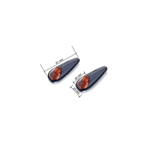 Intermitentes, no homologados, con carcasa negra o símil carbono y cristal ámbar, tienen la particularidad de adherirse a tu moto mediante un adhesivo microporoso (60x19mm).   Información Técnica Conexionado Intermitentes: La mayoría de las motocicletas utilizan relés bimetálicos.
