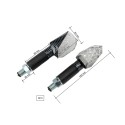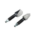 Se trata de intermitentes homologados, de formas y diseño atrevidos, reforzados por el color símil carbono de la carcasa y el cristal transparente, bajo el cual se esconden unos eficaces juegos de leds.