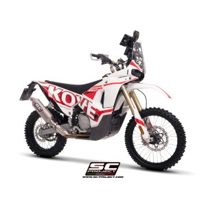 Nacido en los campos de carreras de las competiciones off-road más extremas, el silenciador Rally Raid fue diseñado y desarrollado para trasladar la experiencia racing de SC-Project a tu Kove 450 Rally.
