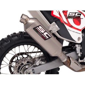 El look del silenciador Rally Raid está realzado con una exclusiva placa de aluminio con el logotipo de SC-Project, exactamente igual que en los sistemas de escape reservados a los equipos oficiales del Departamento de Carreras de SC-Project.