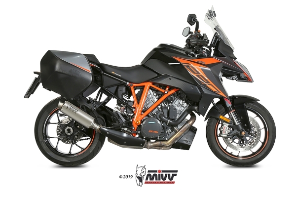 NOTICE: HOMOLOGADO EURO 4 - EURO 5.COMPATIBLE CON BOLSAS LATERALES ORIGINALES. La instalación de este escape requiere la reasignación de la centralita. Para obtener más información lea la información técnica en el cuadro de documentación.Hecho para mejorar estética sound y rendimiento de la moto el escape slip-on Mivv nace a partir de la máxima atención al diseño con el objetivo de satisfacer a los que quieren distinguirse también por el look de su propia moto.GP PRO tiene una soldadura a TIG semiartesanal un diseño compacto y esencial y un sonido agresivo.El tubo de salida gracias a la inspiración del mundo de las competiciones está equipado con una reja de protección removible que esconde el dB-killer.En el terminal está el caracteristico logo Mivv realizado por la tecnología Laser.Se caracteriza por un cuerpo central de titanio con efecto pearled que se obtiene gracias a un proceso especial de manufactura.Esto es el escape ideal para los que quieren un producto exclusivo.