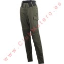 Pantalones elásticos y muy resistentes de mujer con refuerzos de Kevlar. 6 bolsillos cómodos. Protecciones ajustables en las rodillas.