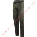 Pantalones elásticos y muy resistentes de hombre con refuerzos de Kevlar. 6 bolsillos cómodos. Protecciones ajustables en las rodillas.