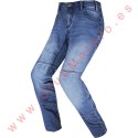 Cómodos vaqueros de mezclilla altamente resistentes con refuerzos de Kevlar. Protecciones ajustables en las rodillas.