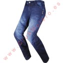 Cómodos vaqueros de mezclilla altamente resistentes con refuerzos de Kevlar. Protecciones ajustables en las rodillas.