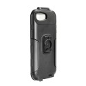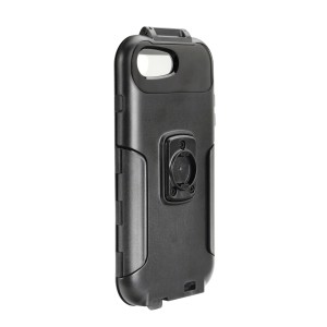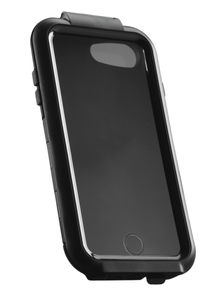 Específica para el modelo de smartphone, no impide el uso de los botones laterales. Permite utilizar la cámara de fotos. Impermeable, con orificio para cable de carga. Protección interna de silicona. Película frontal transparente que no altera las funciones táctiles. Cable de seguridad incluido. Específica para soportes del sistema Optiline