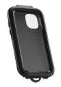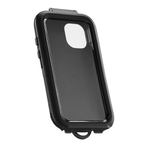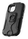 Específica para cada modelo de smartphone, no impide el uso de los botones ni la cámara. Orificio pasacable para carga. Revestimiento interno de silicona antiarañazos. Película frontal transparente que no altera las funciones táctiles. Gancho de seguridad incluido. Específica para soportes de la línea Optiline