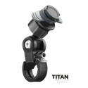 Para manillares con diámetro entre 14 - 34 mm. La pelota de goma permite reducir golpes y vibraciones. Espaciador de goma precortado. Sistema de fijación ajustable para el mejor ángulo de visión. Estructura de metal fundido a presión de alta resistencia. Compatible con todos los estuches Opti Line. Sistema de fijación / liberación rápida DuoLock.