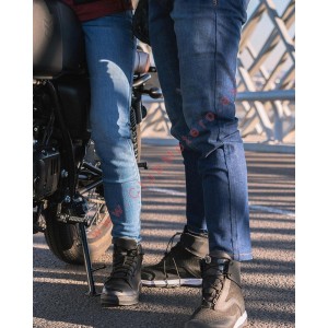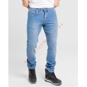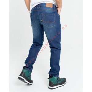 Pantalón de tejido denim resistente a la abrasión, con tecnología de hilo recubierto para durabilidad. Diseño ligero de una sola capa sin forro, cinco bolsillos exteriores prácticos y cierre seguro con cremallera YKK®. Incluye bolsillos interiores para protecciones en cadera y rodilla, ideal para una conducción segura y cómoda.