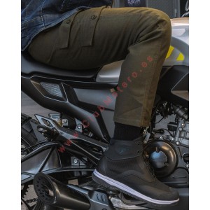 Pantalón fabricado en resistente tejido de algodón con tecnología de hilo de núcleo para mayor durabilidad. Diseñado con una única capa de tejido sin forro, cuenta con ocho bolsillos exteriores prácticos y cierre seguro con cremallera YKK®. Además, dispone de bolsillos interiores diseñados para la inserción de protecciones en cadera y rodilla, proporcionando seguridad y comodidad durante la conducción.