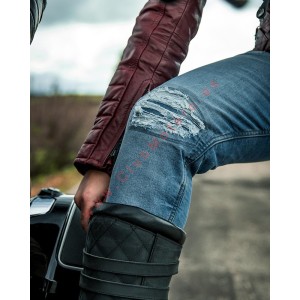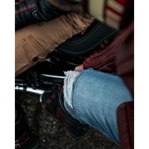 Explora nuestro pantalón de moto en tejido denim de algodón, elaborado con tecnología de hilo recubierto para una resistencia y durabilidad excepcionales. Diseñado para combinar funcionalidad y estilo, cuenta con cinco bolsillos exteriores para mayor practicidad y bolsillos específicos para protecciones en cadera y rodilla, asegurando una máxima seguridad en cada trayecto. Su diseño de capa única sin forro garantiza una experiencia cómoda y ligera, ideal para motoristas que buscan un equipamiento versátil y confiable para cada viaje.