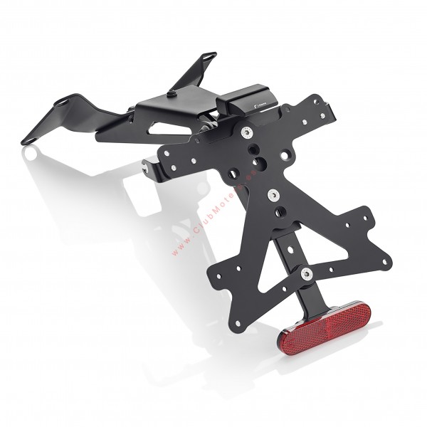 Realizado en aluminio, cada kit Portamatrícula Fox ha sido estudiado específicamente para cada modelo de moto en cuestión. Esto no sólo hace que se adapte perfectamente a la línea de la moto, sino que también permite una fácil y rápida instalación. En efecto, cada kit se suministra equipado con todo lo necesario para su montaje sin necesidad de modificar ninguna pieza original. Gran funcionalidad con unas dimensiones reducidas al mínimo, siempre cumpliendo con las normativas vigentes. Los kits Fox están dotados de luz de matrícula LED SMD, catadióptrico, soportes de intermitentes Rizoma, son regulables e incluyen tornillos de seguridad para garantizar la correcta inclinación.