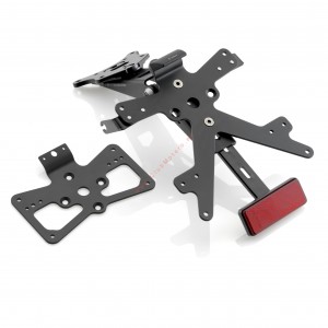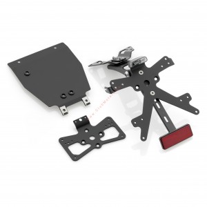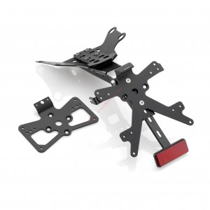 Realizado en aluminio, cada kit Portamatrícula Fox ha sido estudiado específicamente para cada modelo de moto en cuestión. Esto no sólo hace que se adapte perfectamente a la línea de la moto, sino que también permite una fácil y rápida instalación. En efecto, cada kit se suministra equipado con todo lo necesario para su montaje sin necesidad de modificar ninguna pieza original. Gran funcionalidad con unas dimensiones reducidas al mínimo, siempre cumpliendo con las normativas vigentes. Los kits Fox están dotados de luz de matrícula LED SMD, catadióptrico, soportes de intermitentes Rizoma, son regulables e incluyen tornillos de seguridad para garantizar la correcta inclinación.