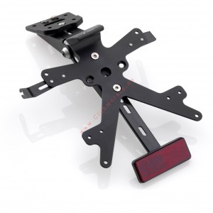 Realizado en aluminio, cada kit Portamatrícula Fox ha sido estudiado específicamente para cada modelo de moto en cuestión. Esto no sólo hace que se adapte perfectamente a la línea de la moto, sino que también permite una fácil y rápida instalación. En efecto, cada kit se suministra equipado con todo lo necesario para su montaje sin necesidad de modificar ninguna pieza original. Gran funcionalidad con unas dimensiones reducidas al mínimo, siempre cumpliendo con las normativas vigentes. Los kits Fox están dotados de luz de matrícula LED SMD, catadióptrico, soportes de intermitentes Rizoma, son regulables e incluyen tornillos de seguridad para garantizar la correcta inclinación.