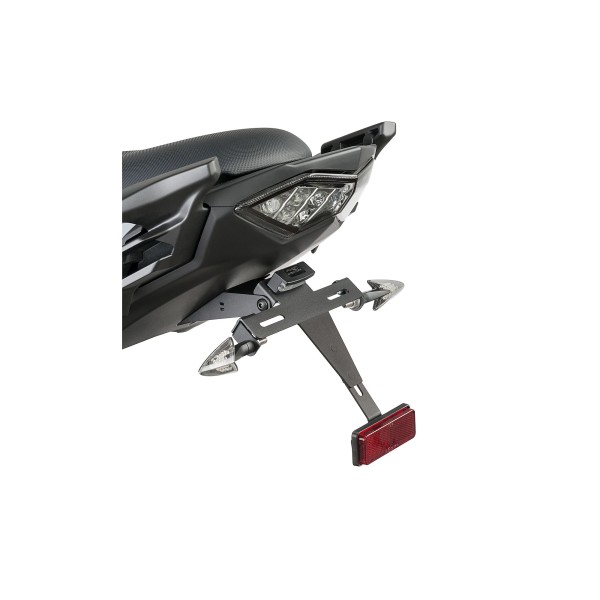 El conjunto combina piezas de acero con acabado en pintura epoxi y elementos de poliamida, logrando una notable reducción de peso en comparación con el soporte original. El montaje de la pieza es muy sencillo e incluye instrucciones detalladas. Este portamatrículas está diseñado para aprovechar los intermitentes y la luz de matrícula originales. Comprueba cuidadosamente la ABE para asegurarte de que esta pieza sea adecuada para tu motocicleta.