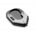 La base del caballete lateral agrandada Rizoma, en aluminio mecanizado a partir de un bloque macizo, tiene una forma y dimensiones estudiadas con especial atención para evitar posibles interferencias con el piloto durante la marcha. Un detalle tan funcional como cuidado estéticamente.