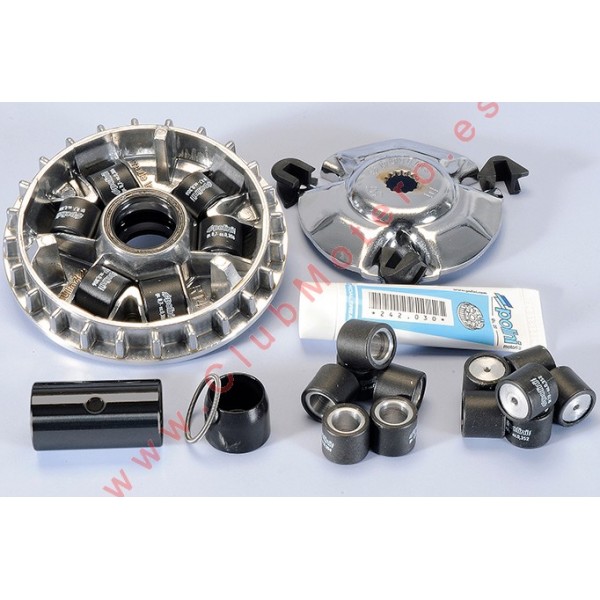 Variador Polini Maxi Hi Speed para los modelos Yamaha X-Max 125 E3, con este producto tu yamaha X-Max será más potente debido a la ligereza de este variador y el ángulo de las rampas por dónde desliza la correa, se suministra con 3 juegos de rodillos de diferente peso, un juego de 5,5gr, otro de 8,7gr y el último de 10gr