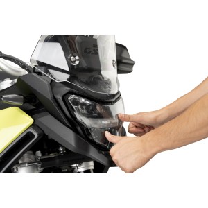 La nueva línea de protectores de faro Adhere de Puig Hi Tech Parts proporciona una eficaz protección del faro delantero ante el impacto de pequeños objetos, arañazos, suciedad, insectos y el desgaste prematuro por la exposición a los rayos UV.