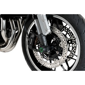 Protege la Horquilla de tu moto y vístela con un toque de competición con el protector de Horquilla PHB19 de PUIG. Mecanizado a partir de un bloque de nylon, con un peso reducido de 265 gr y 40 mm de largo x 50 mm de diámetro, será la protección perfecta e integral tanto de la horquilla como de la suspensión. Su look de competición dotará a tu moto del carácter Racing que tanto aprecias y, además del protector de horquilla en color negro, Puig da la posibilidad de adquirir aros anodizados con diferentes colores para poder cambiar el color de la pieza a conveniencia del piloto, estos aros se venden a parte del protector.