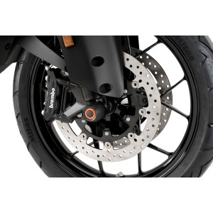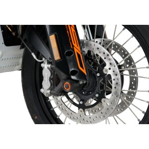 Protege la Horquilla de tu moto y vístela con un toque de competición con el protector de Horquilla PHB19 de PUIG. Mecanizado a partir de un bloque de nylon, con un peso reducido de 265 gr y 40 mm de largo x 50 mm de diámetro, será la protección perfecta e integral tanto de la horquilla como de la suspensión. Su look de competición dotará a tu moto del carácter Racing que tanto aprecias y, además del protector de horquilla en color negro, Puig da la posibilidad de adquirir aros anodizados con diferentes colores para poder cambiar el color de la pieza a conveniencia del piloto, estos aros se venden a parte del protector.