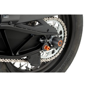 Además de la función protectora, su diseño inspirado en el estilo “Racing” mostrará el verdadero carácter competitivo de tu moto. Junto al protector del basculante Puig sirve los tapones con acabado color negro. En caso de querer aportarle un toque de color a la pieza, podréis adquirir los aros anodizados con el color que más se adapte a la estética de tu moto.