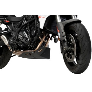 Su instalación no afecta en la aerodinámica de la moto. La parte inferior del protector es totalmente plana, lo que facilita levantar la moto en el taller mecanico desde la parte inferior si es necesario, y dispone de agujeros para garantizar una buena refrigeración y evacuar el agua, barro, o pequeñas piedras acumuladas.