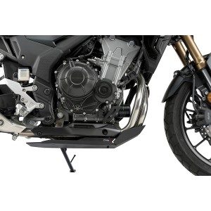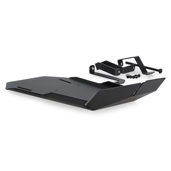 La parte inferior del protector es totalmente plana, lo que facilita levantar la moto en el taller mecanico desde la parte inferior si es necesario, y dispone de agujeros para garantizar una buena refrigeración y evacuar el agua, barro, o pequeñas piedras acumuladas.