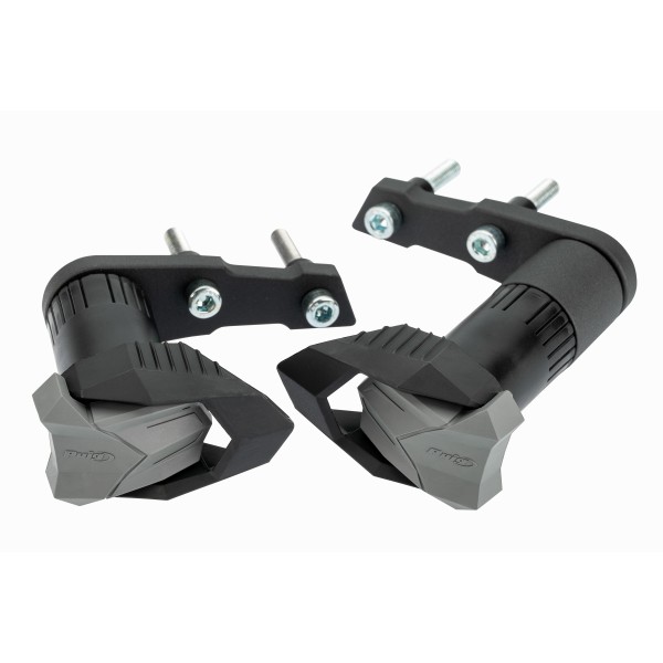 Estos protectores garantizan una protección integral del chasis y el motor de tu moto, además de aportarles una protección adicional a tus rodillas con la goma que corona la pieza. Se trata de un diseño cuidado, topes fabricados en Nylon, que encajará a la perfección con la línea estética de tu moto, respetando las medidas de esta, ya que no sobresale del manillar y toca antes que las estriberas. El protector se sirve con la goma gris por defecto, pero Puig tiene disponible una gran variedad de colores para que se adapte a la perfección a la imagen a tu moto.