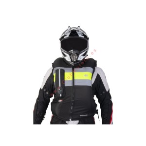 El chaleco queda conectado a la motocicleta mediante una correa que se sujeta al chasis. En caso de accidente, la tracción sobre el sistema percutor activará la botella encargada de inflar el chaleco. La activación es instantánea, en menos de 0,35 segundos el chaleco estará inflado por completo, protegiendo al motorista ante eventuales impactos.