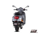 El cuerpo ultraligero de titanio está realzado por el logotipo SC-Project grabado con láser e integrado en una concavidad diseñada para aumentar la resistencia y otorgar al escape un aspecto distintivo y dinámico. Junto con el fondo en fibra de carbono de perfil afilado y la salida asimétrica, contribuye a añadir un toque agresivo y al mismo tiempo elegante al diseño atemporal de la Vespa.