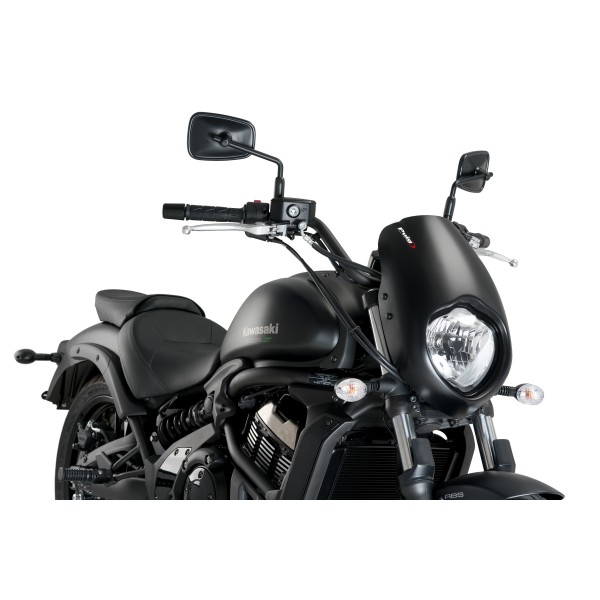 Fabricado con materiales altamente resistentes a los impactos y con gran capacidad aerodinámica, esta pieza está disponible para modelos Harley Davidson, Indian y modelos de moto japonesas, fabricado específicamente para cada modelo de moto, se adapta a la perfección al faro, ya sea redondo o con forma, como el caso del modelo Vulcan S.