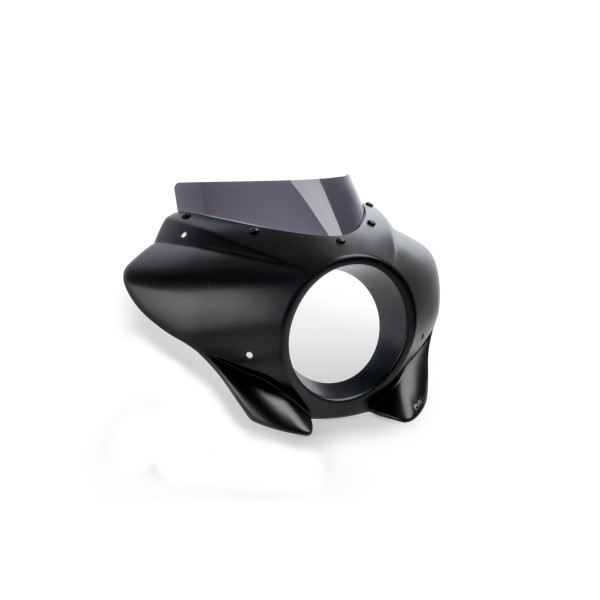 Su diseño de líneas simples y redondeadas combina perfectamente con muchos modelos de moto custom y cruiser, aportando un exclusivo look personalizado y mejorando notablemente la protección aerodinámica del piloto.
