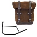 tratado con cera que lo hace resistente al agua. Atención a los detalles más pequeños con acabados de cuero de 3 mm, simples y puros como los materiales con los que fue construido. Se conecta rápidamente al marco de nuestra bolsa con el sistema de liberación rápida ya incluido y montado en la parte posterior de la bolsa,