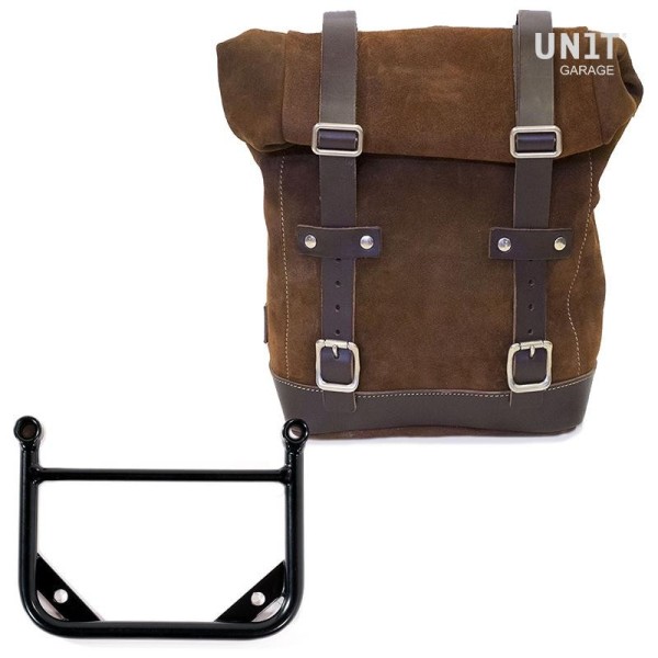 Portabolsas de aluminio con frontal de cuero ajustable y enganche rápido + chasis thriumph scrambler 400 x dx (sólo compatible con nuestro escape bajo código: 4206low)