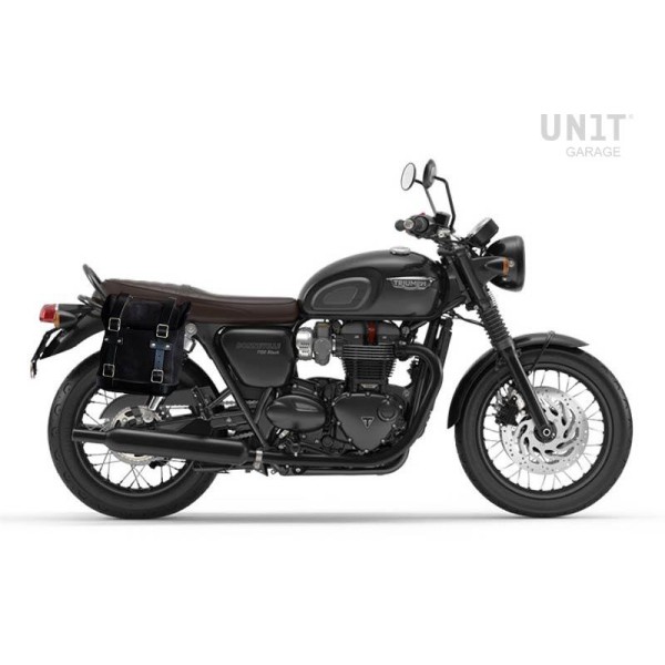 Bolsa lateral en piel dividida + marco triumph t100 dx (2017 hasta ahora)