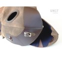 Tratado en los detalles más pequeños con tapicería de cuero de 3 mm, le da al tanque un estilo vintage y lo protege en caso de golpes y arañazos durante el viaje.