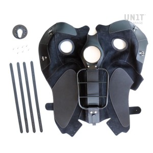 Tratado en los detalles más pequeños con tapicería de cuero de 3 mm, le da al tanque un estilo vintage y lo protege en caso de golpes y arañazos durante el viaje.