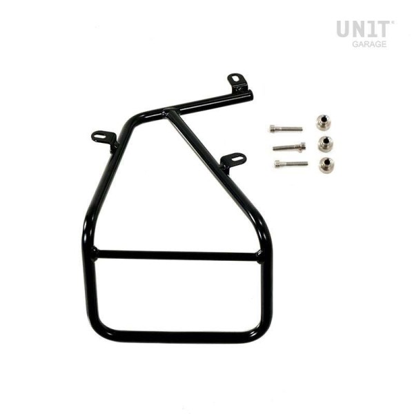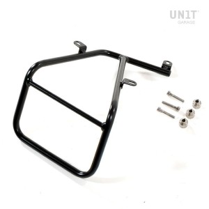 Estructura de acero tratado con un acabado negro mate con polvos episódicos. Se monta en el lado derecho de la bicicleta.