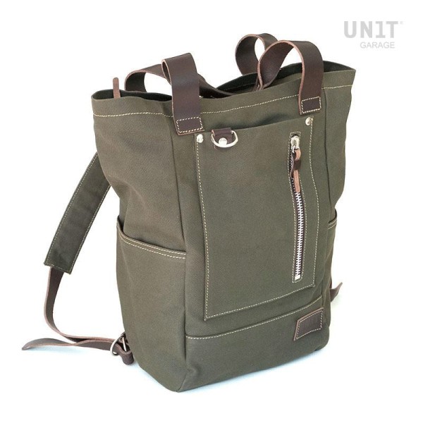 Mochila hecha a mano en Italia en resistente algodón impermeable de alta calidad; tratado con cera que lo hace resistente al agua.